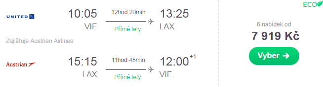 Cenovou bombu z Vídně do Los Angeles pořídíte s Austrian Airlines. V nabídce jsou nyní akční přímé lety, které pořídíte na měsíce duben a květen. V ceně máte 2 ks příručního zavazadla. 1 ks (40 x 30 x 10 cm) do 2 kg + 1ks (55 x 40 x 23 cm) do 8 kg.