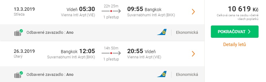 Odlet je z Vídně s Ukraine International Airline s jedním přestupem v Kyjevě.