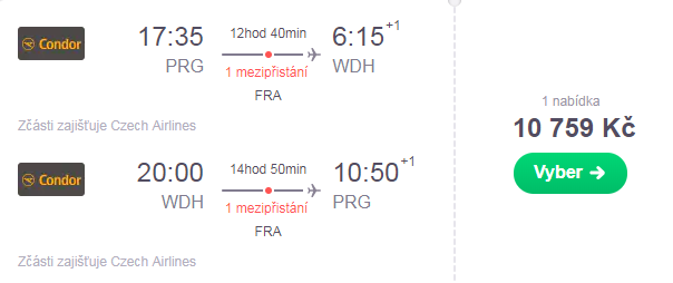 Německá letecká společnost Condor nyní nabízí akční letenky do Namibie. Nejlevnější termíny jsou dostupné v květnu.