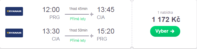 Ryanair nabízí na červen výhodné letenky z Prahy do Říma. V případě termínu 15.6. – 17.6. budete potřebovat pouze jeden den dovolené, protože letenky jsou od soboty do pondělí. V ceně je malé zavazadlo o rozměrech 40 x 20 x 25 cm.