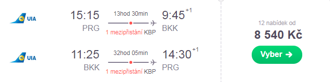 Cenovou bombu do Bangkoku aktuálně nabízí Ukraine International Airlines (UIA) s přestupem v Kyjevě. Akční letenky jsou dostupné na měsíce červen nebo září.