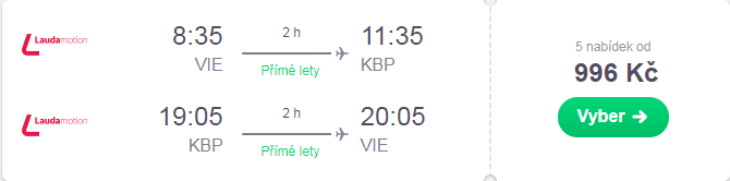 Na červen se objevily u Laudamotion akční letenky z Vídně do Kyjeva. Akční lety jsou k dispozici po celý červen, nejvýhodněji vychází letenky během týdne nebo s odletem v sobotu a návratem v pondělí. V ceně je malé zavazadlo o rozměrech 40 x 20 x 25 cm. Kyjev je skvělým místem pro low-cost cestovatele.