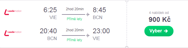 Low-cost letecká společnost Laudamotion aktuálně nabízí letenky z Vídně do Barcelony od 900 Kč. Termín je dostupný v březnu, vyhneme se tak hlavní turistické sezóně a můžeme v klidu navštívit Gaudího nejznámější stavby nebo si vychutnat paellu a sangrii.